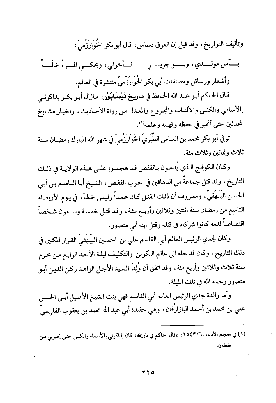 وتأليف التواريخ، وقد قيل إن العرق دساس، قال أبو بكر الخوارزميّ: