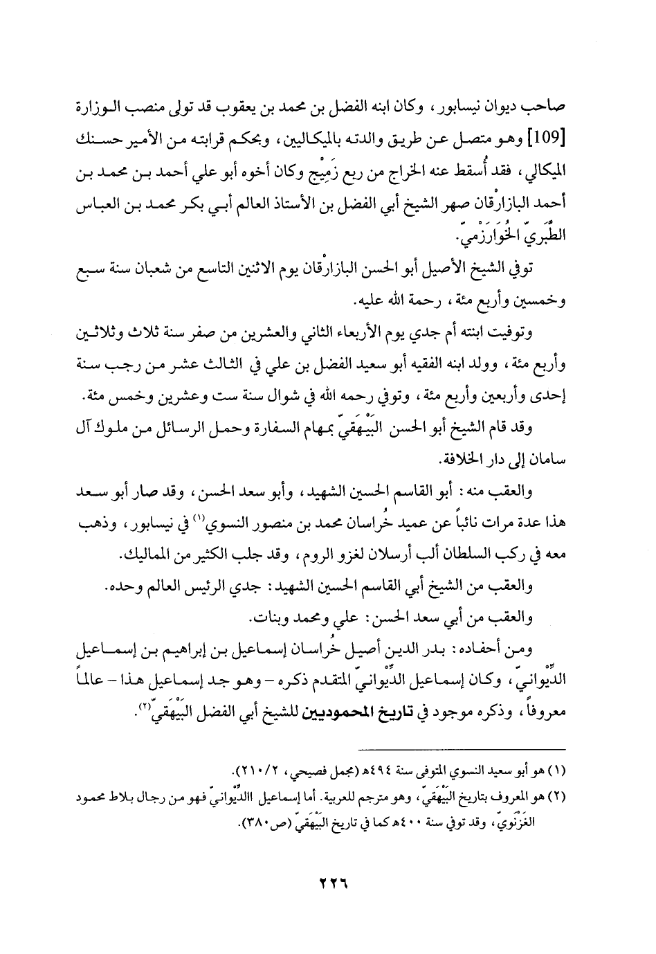 صاحب ديوان نيسابور، وكان ابنه الفضل بن محمد بن يعقوب قد تولى منصب الوزارة [109] وهو متصل عن طريق والدته بالميكاليين، وبحكم قرابته من الأمير حسنك الميكالي، فقد أسقط عنه الخراج من ربع زميج وكان أخوه أبو علي أحمد بن محمد بن أحمد البازارقان صهر الشيخ أبي الفضل بن الأستاذ العالم أبي بكر محمد بن العباس الطّبريّ الخوارزميّ.