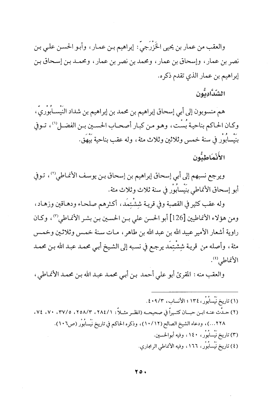 ويرجع نسبهم إلى أبي إسحاق إبراهيم بن إسحاق بن يوسف الأنماطي «2» ، توفي أبو إسحاق الأنماطي بنيسابور في سنة ثلاث وثلاث مئة.