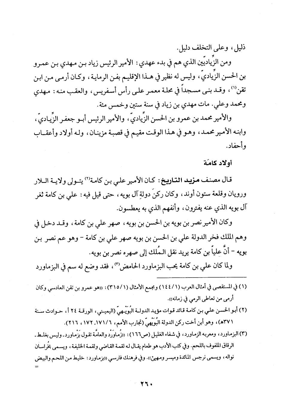 ومن الزّياديّين الذي هم في بدء عهدي: الأمير الرئيس زياد بن مهدي بن عمرو بن الحسن الزّياديّ، وليس له نظير في هذا الإقليم بفن الرماية، وكان أرمى من ابن تقن «1» ، وقد بنى مسجدا في محلة معمر على رأس أسفريس، والعقب منه: مهدي ومحمد وعلي. مات مهدي بن زياد في سنة ستين وخمس مئة.