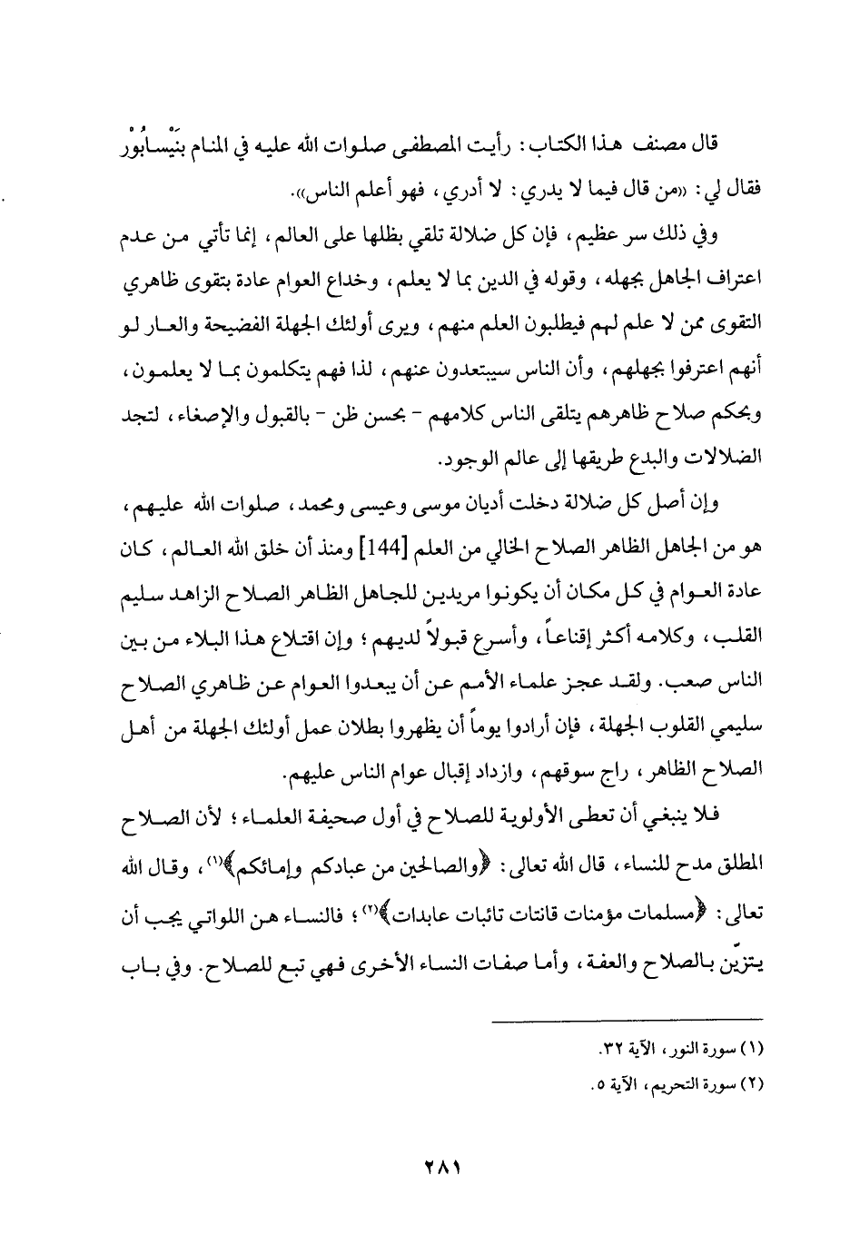«2» ؛ فالنساء هن اللواتي يجب أن يتزّين بالصلاح والعفة، وأما صفات النساء الأخرى فهي تبع للصلاح. وفي باب