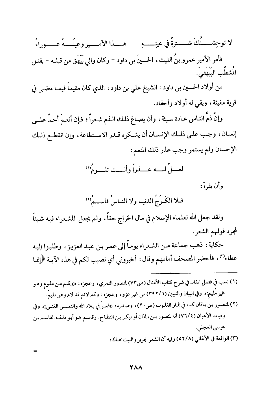 ولقد جعل الله لعلماء الإسلام في مال الخراج حقا، ولم يجعل للشعراء فيه شيئا لمجرد قولهم الشعر.