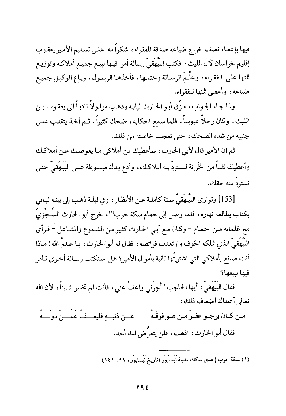 فقال البيهقيّ: أيها الحاجب! أجرني وأعف عني، فأنت لم تخسر شيئا، لأن الله تعالى أعطاك أضعاف ذلك: