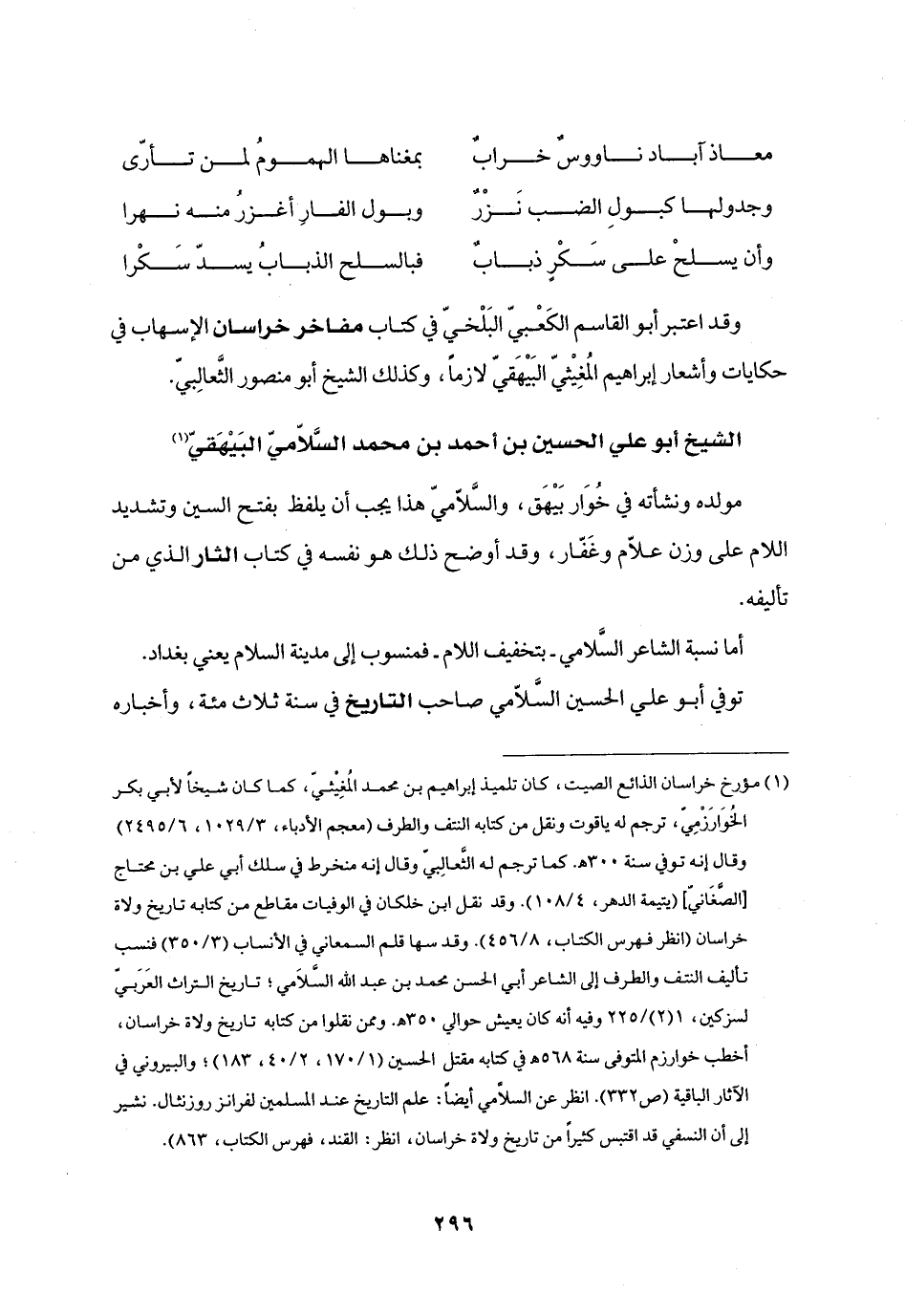 الشيخ أبو علي الحسين بن أحمد بن محمد السّلّاميّ البيهقيّ «1»