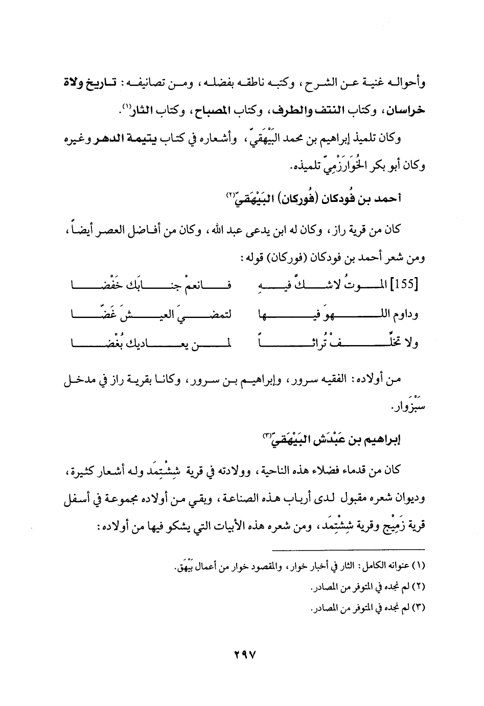 وأحواله غنية عن الشرح، وكتبه ناطقه بفضله، ومن تصانيفه: تاريخ ولاة خراسان، وكتاب النتف والطرف، وكتاب المصباح، وكتاب الثار «1» .
