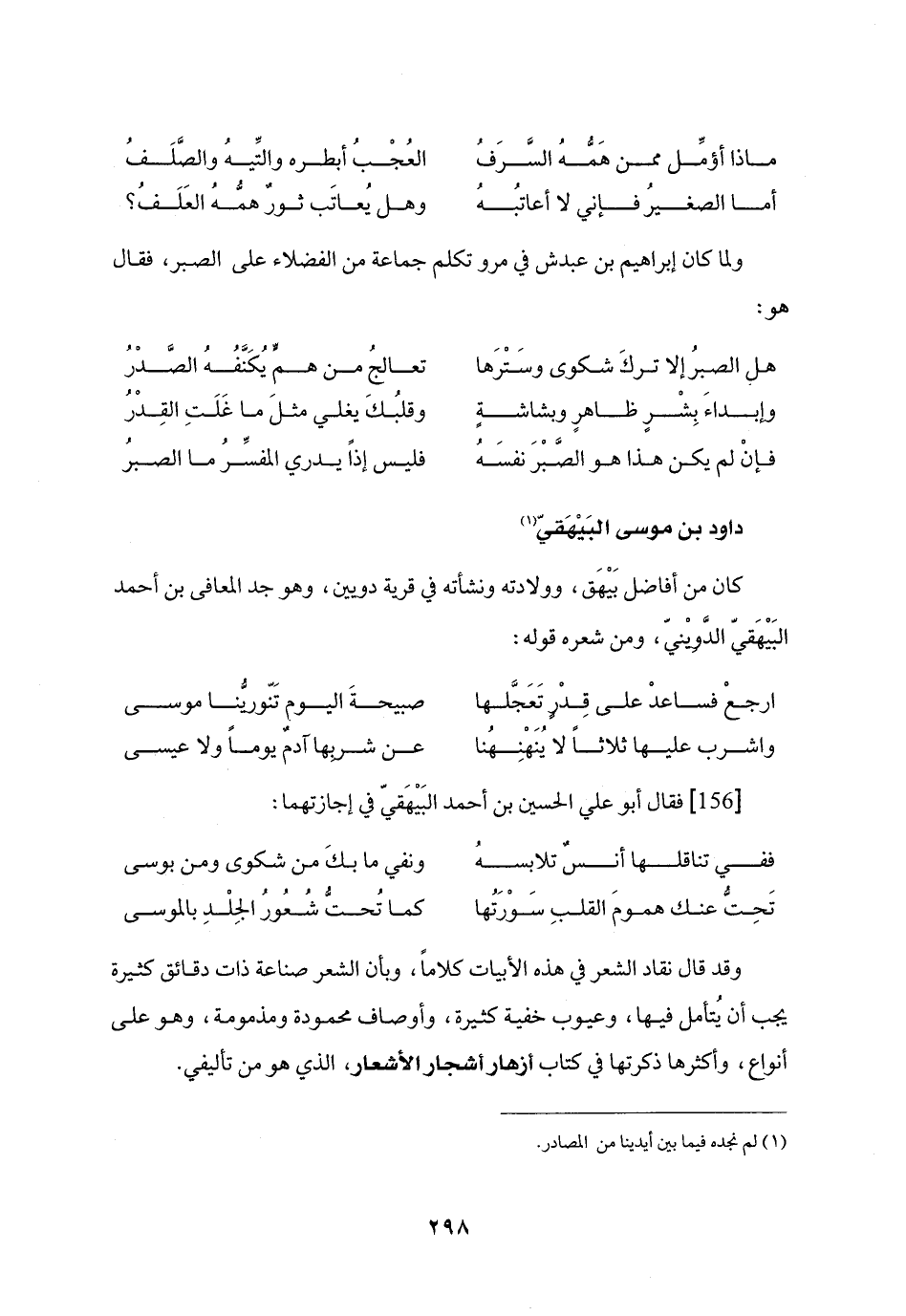 ولما كان إبراهيم بن عبدش في مرو تكلم جماعة من الفضلاء على الصبر، فقال هو: