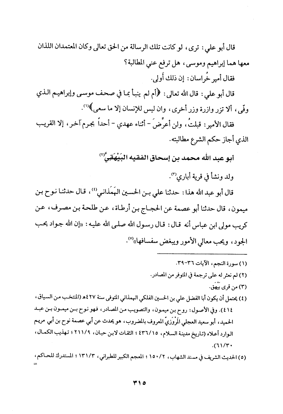 قال أبو عبد الله هذا: حدثنا علي بن الحسين الهمذاني «4» ، قال حدثنا نوح بن ميمون، قال حدثنا أبو عصمة عن الحجاج بن أرطاة، عن طلحة بن مصرف، عن كريب مولى ابن عباس أنه قال: قال رسول الله صلى الله عليه: «إن الله جواد يحب الجود، ويحب معالي الأمور ويبغض سفسافها» «5» .