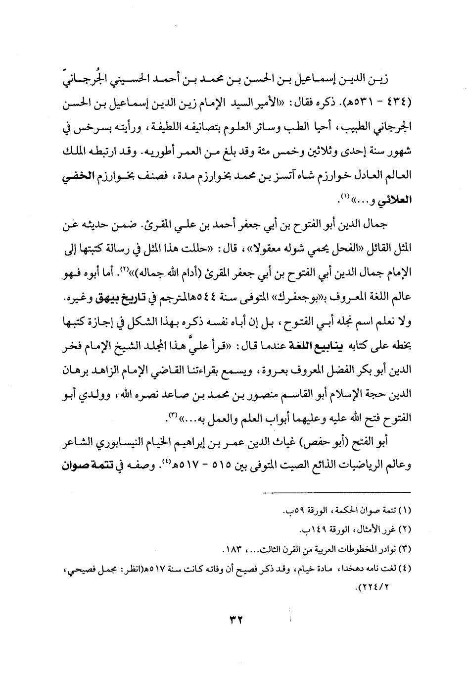 أبو الفتح (أبو حفص) غياث الدين عمر بن إبراهيم الخيام النيسابوري الشاعر وعالم الرياضيات الذائع الصيت المتوفى بين 515- 517 هـ «4» . وصفه في تتمة صوان