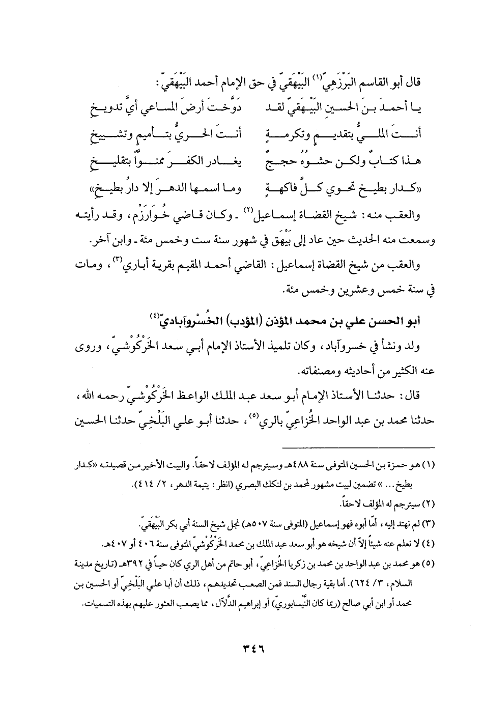قال أبو القاسم البرزهيّ «1» البيهقيّ في حق الإمام أحمد البيهقيّ: