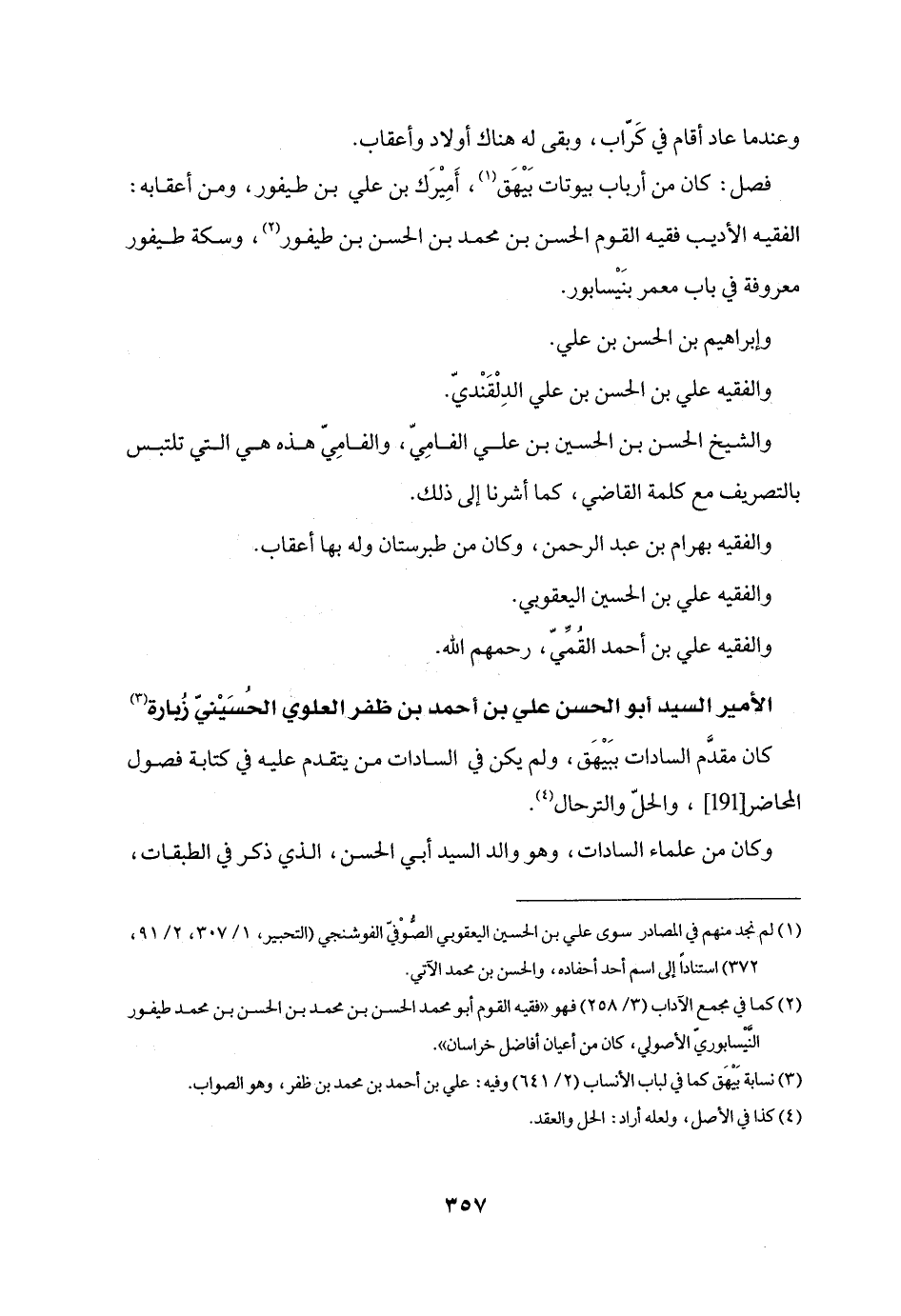 كان مقدّم السادات ببيهق، ولم يكن في السادات من يتقدم عليه في كتابة فصول المحاضر [191] ، والحلّ والترحال «4» .