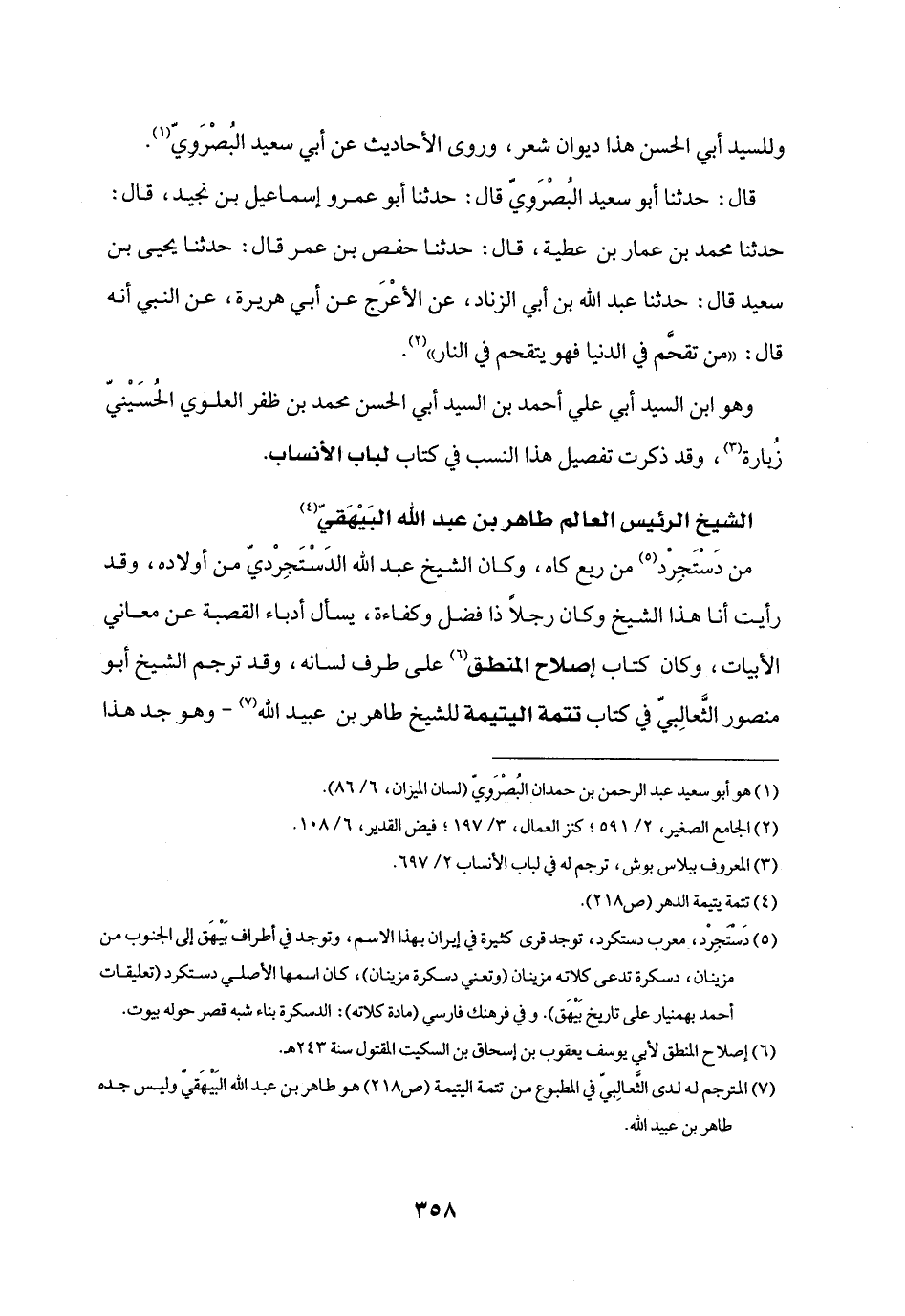 الشيخ الرئيس العالم طاهر بن عبد الله البيهقيّ «4»