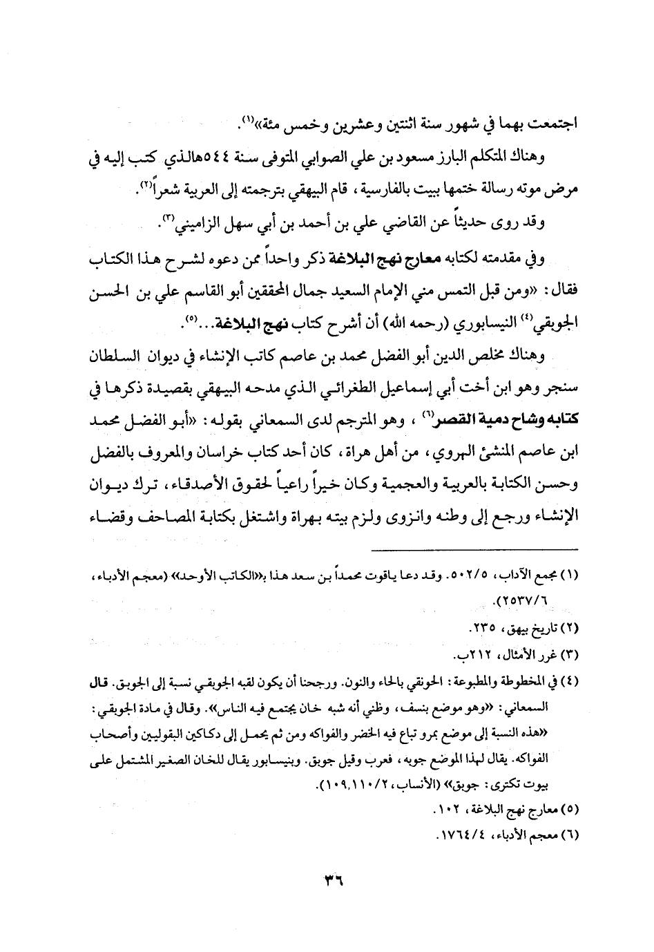 وهناك المتكلم البارز مسعود بن علي الصوابي المتوفى سنة 544 هـ الذي كتب إليه في مرض موته رسالة ختمها ببيت بالفارسية، قام البيهقي بترجمته إلى العربية شعرا «2» .