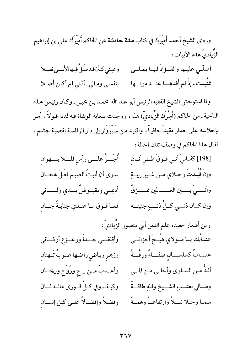 وروى الشيخ أحمد أميرك في كتاب مئة حادثة عن الحاكم أميرك علي بن إبراهيم الزّياديّ هذه الأبيات: