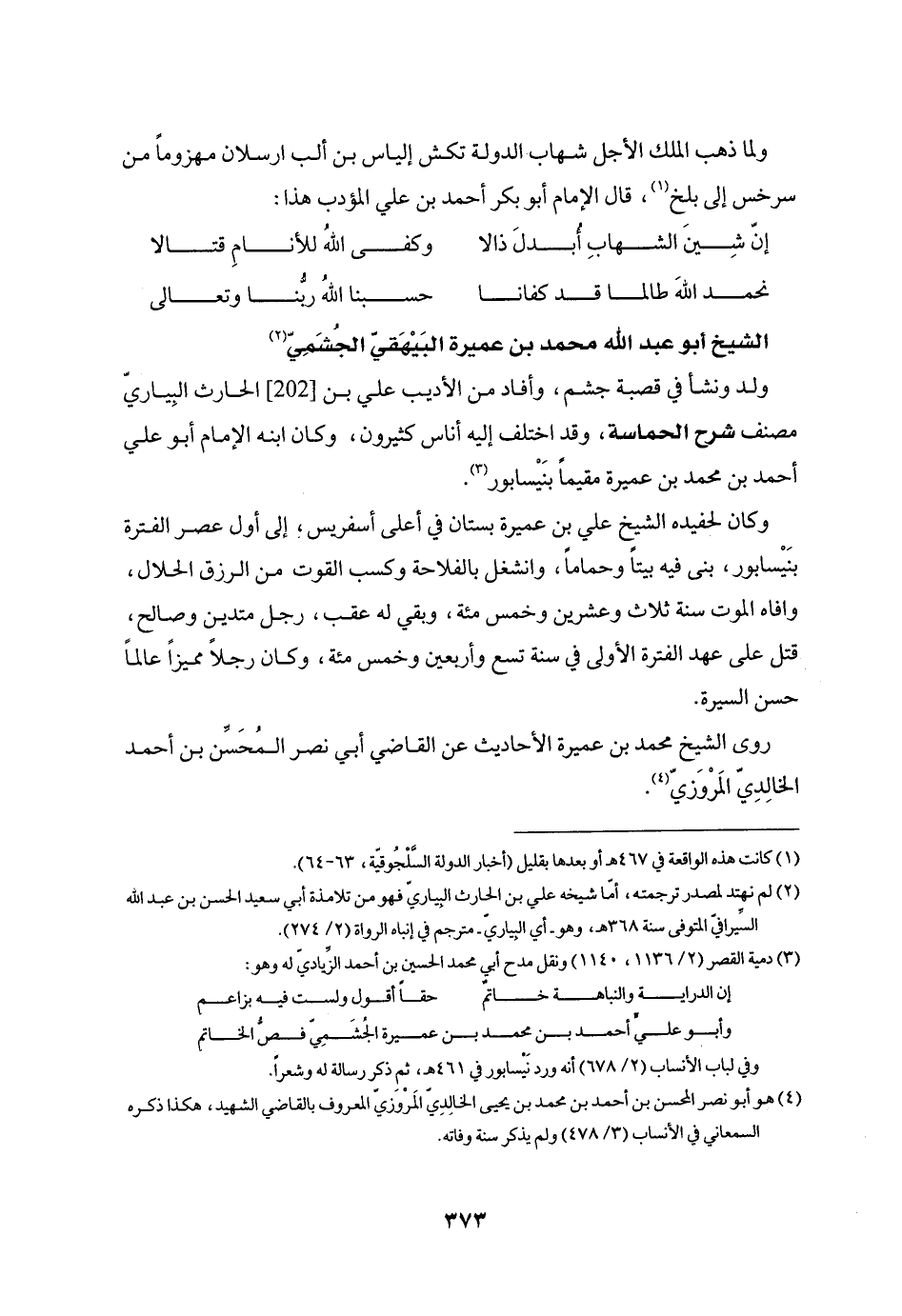 الشيخ أبو عبد الله محمد بن عميرة البيهقيّ الجشميّ «2»