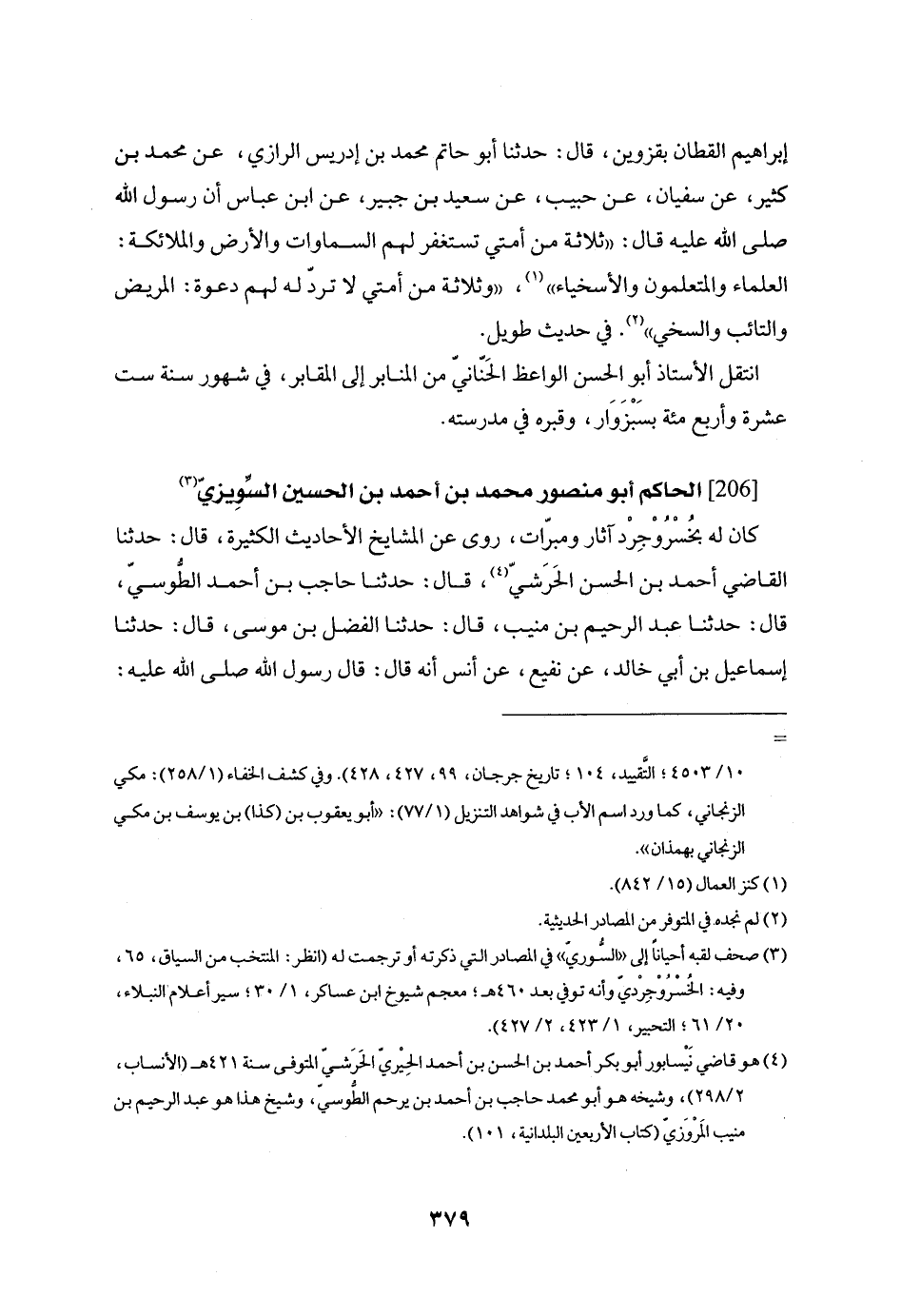 [206] الحاكم أبو منصور محمد بن أحمد بن الحسين السّويزيّ «3»