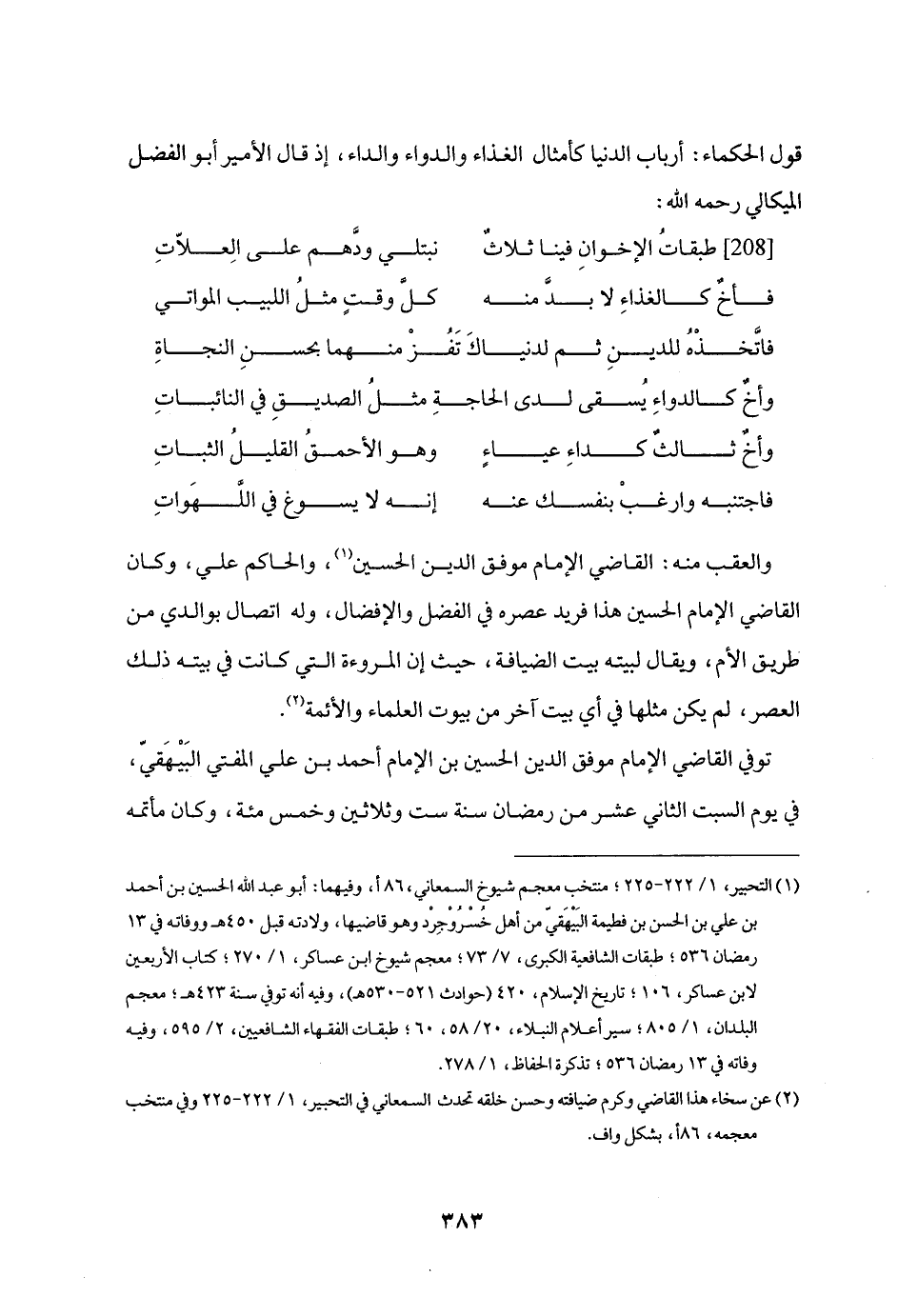 [208] طبقات الإخوان فينا ثلاث ... نبتلي ودّهم على العلّات