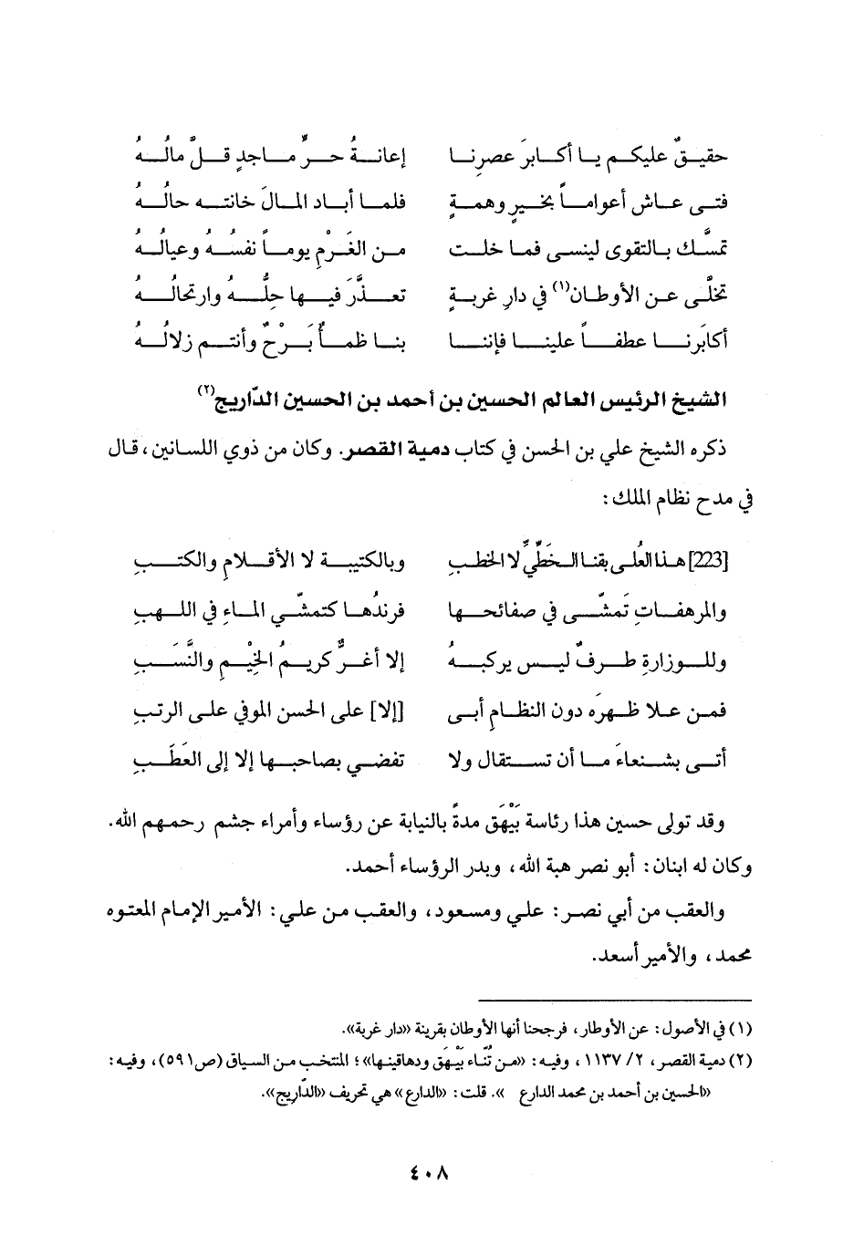 الشيخ الرئيس العالم الحسين بن أحمد بن الحسين الدّاريج «2»