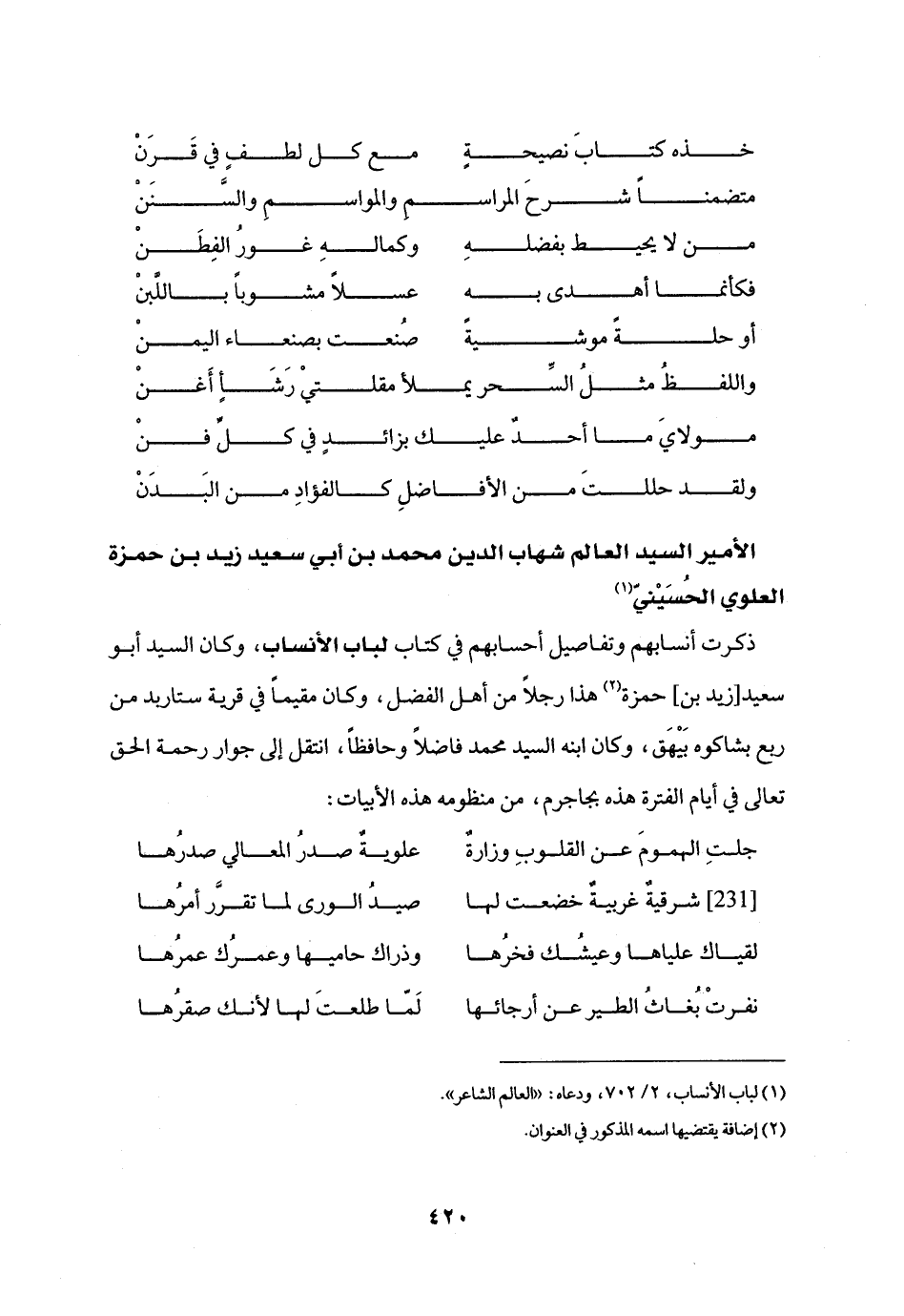 الأمير السيد العالم شهاب الدين محمد بن أبي سعيد زيد بن حمزة العلوي الحسينيّ «1»
