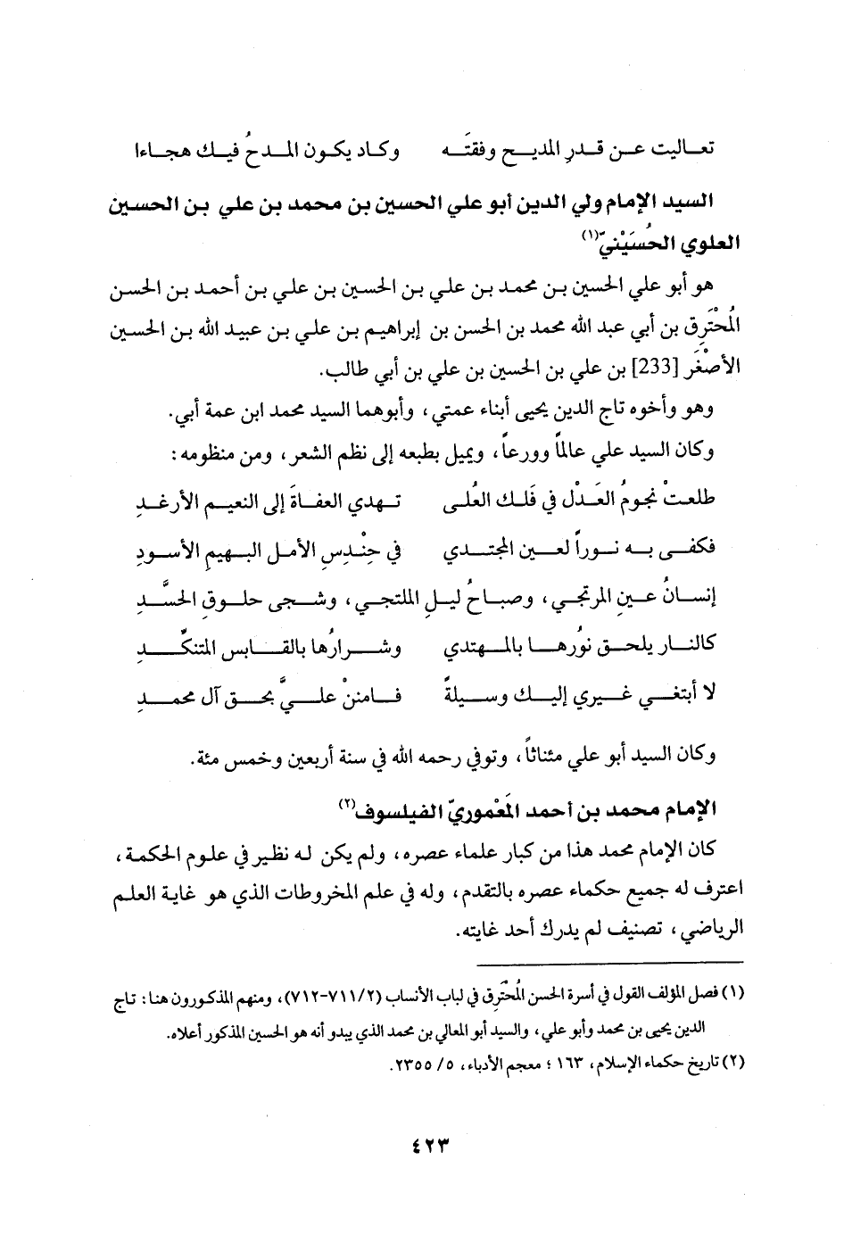 السيد الإمام ولي الدين أبو علي الحسين بن محمد بن علي بن الحسين العلوي الحسينيّ «1»