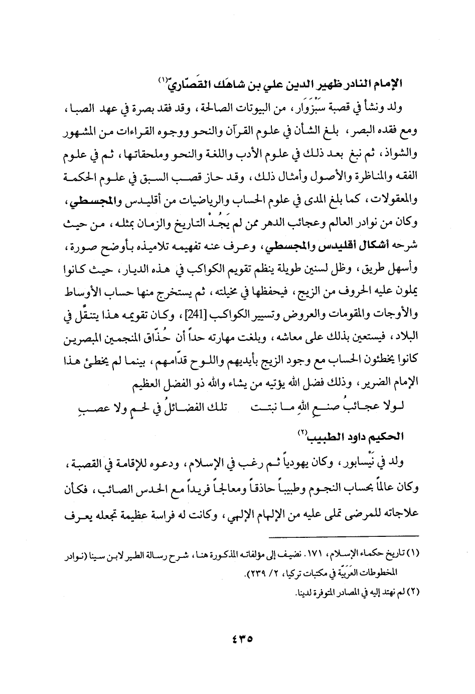 الإمام النادر ظهير الدين علي بن شاهك القصّاريّ «1»