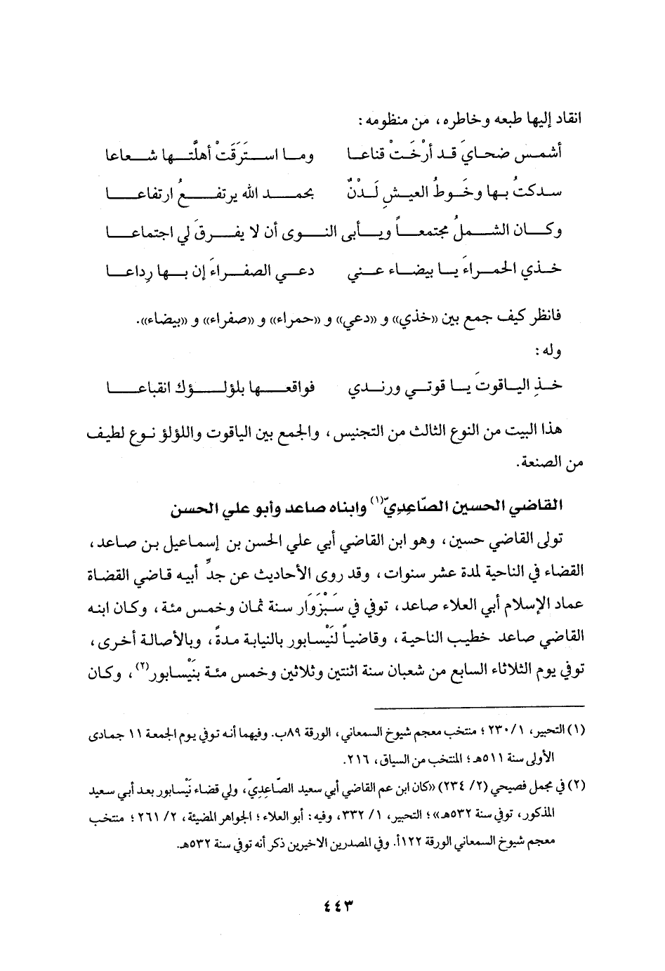 القاضي الحسين الصّاعديّ «1» وابناه صاعد وأبو علي الحسن