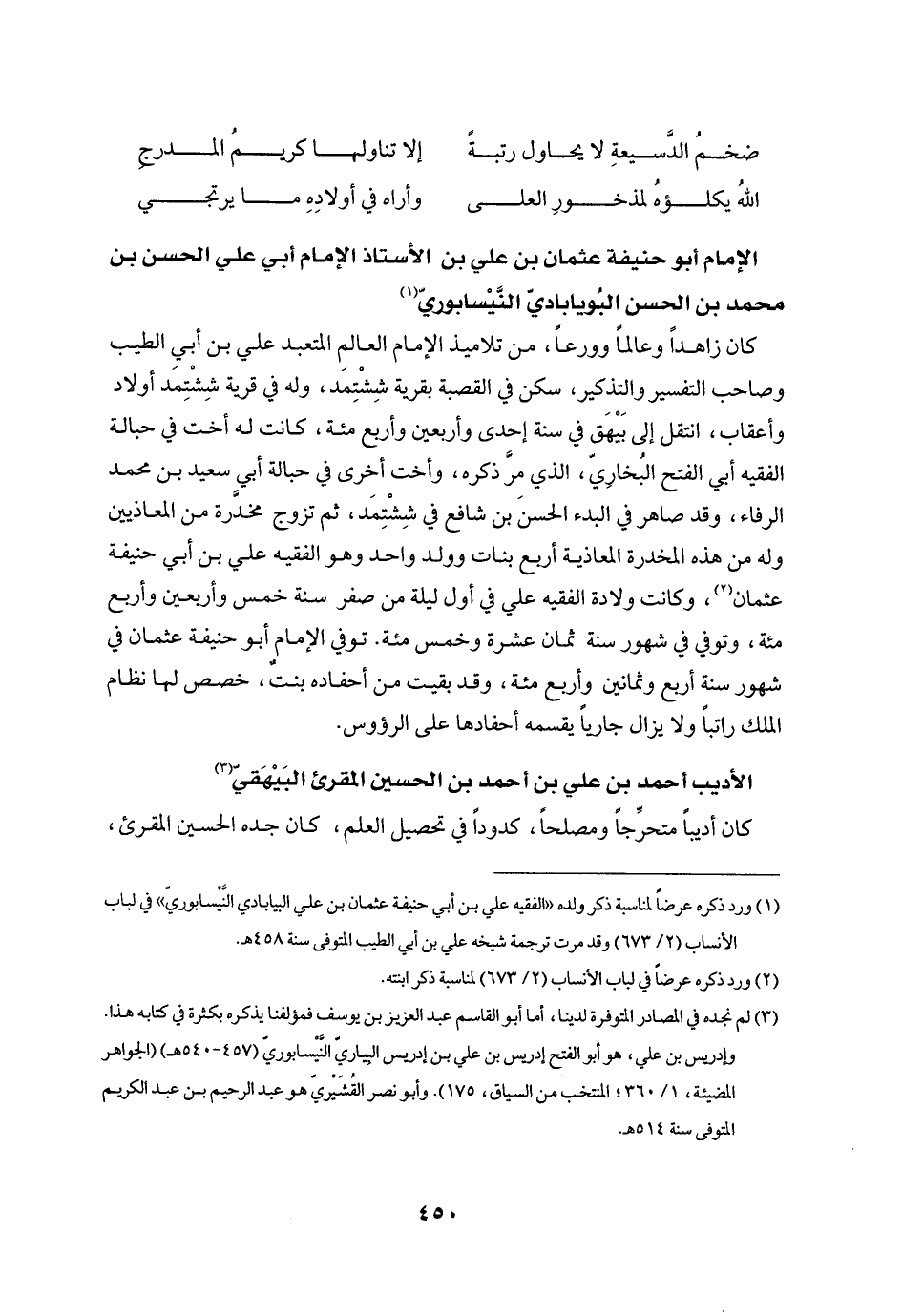 الإمام أبو حنيفة عثمان بن علي بن الأستاذ الإمام أبي علي الحسن بن محمد بن الحسن البوياباديّ النّيسابوريّ «1»
