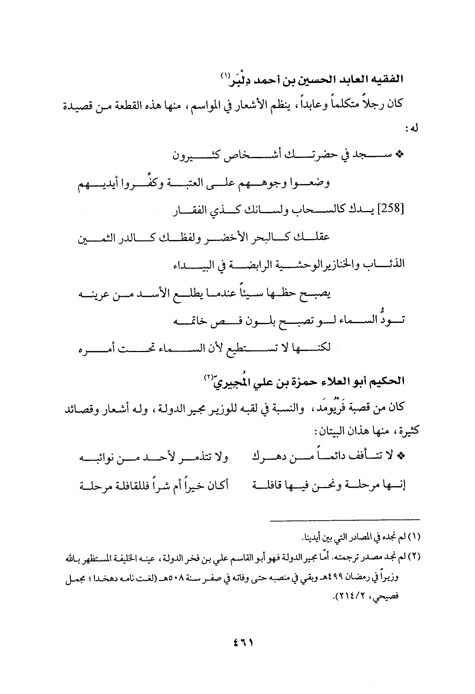 كان من قصبة فريومد، والنسبة في لقبه للوزير مجير الدولة، وله أشعار وقصائد كثيرة، منها هذان البيتان: