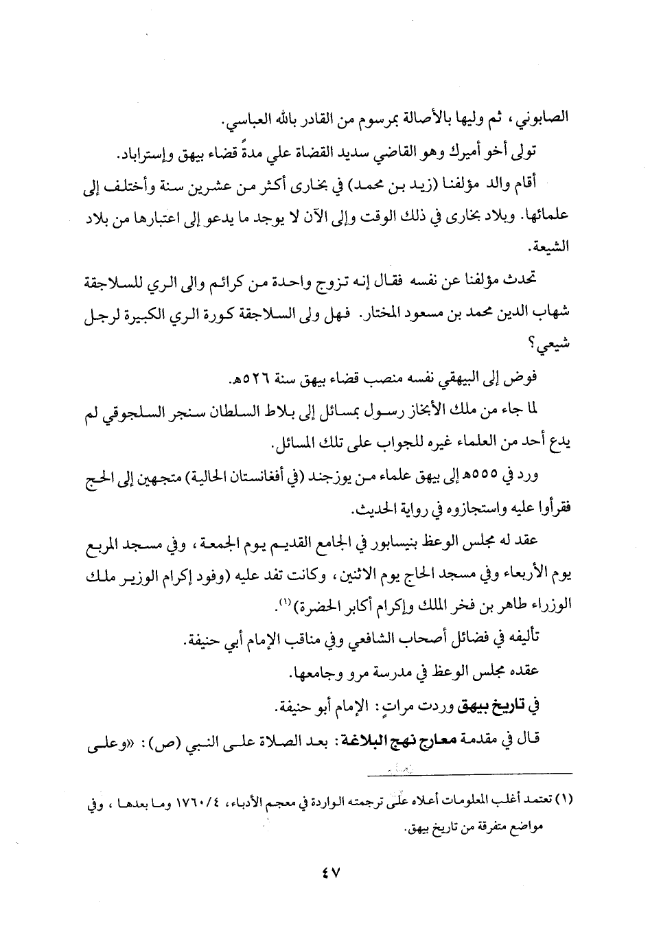في تاريخ بيهق وردت مرات: الإمام أبو حنيفة.