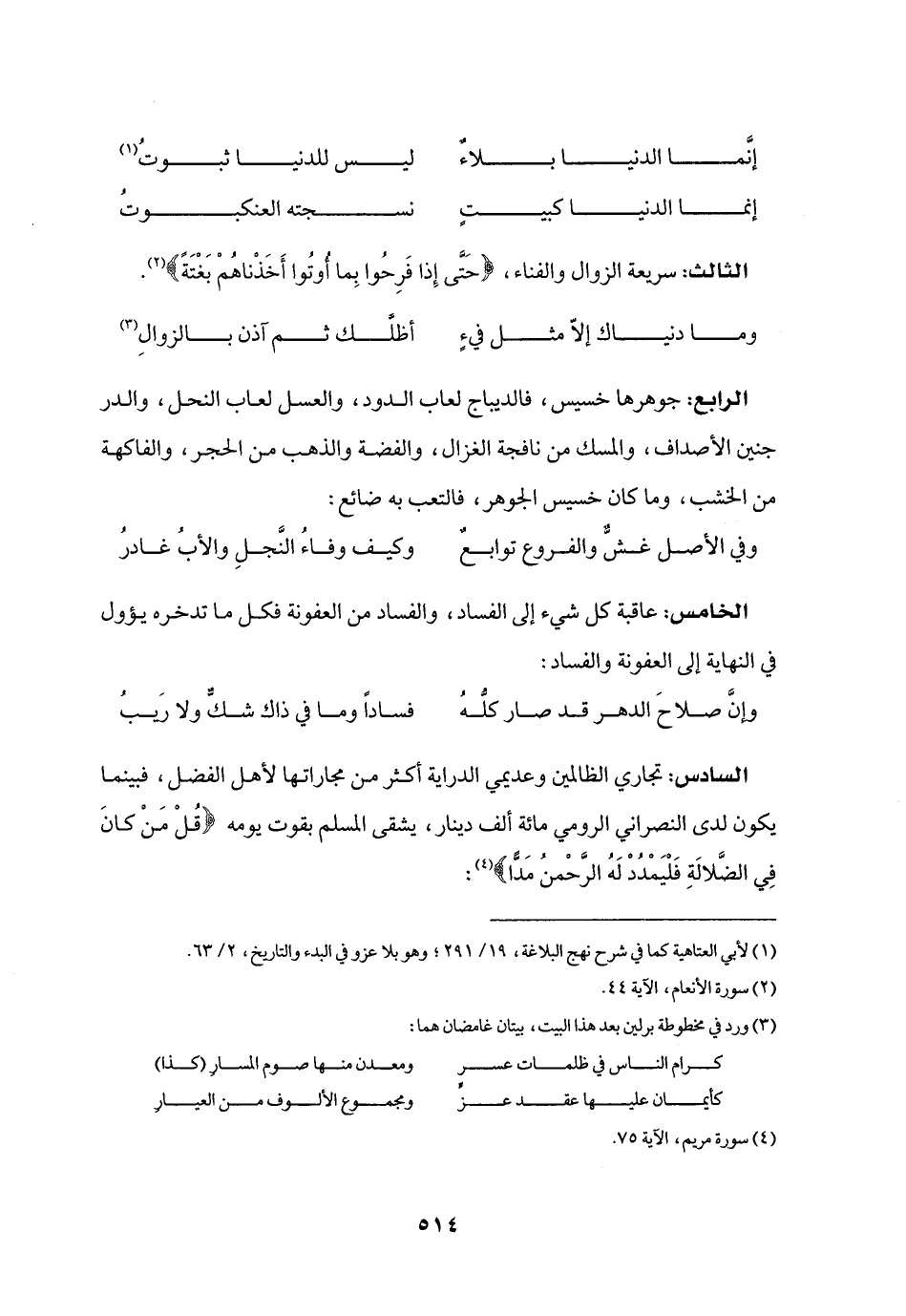 إنّما الدنيا بلاء ... ليس للدنيا ثبوت «1»