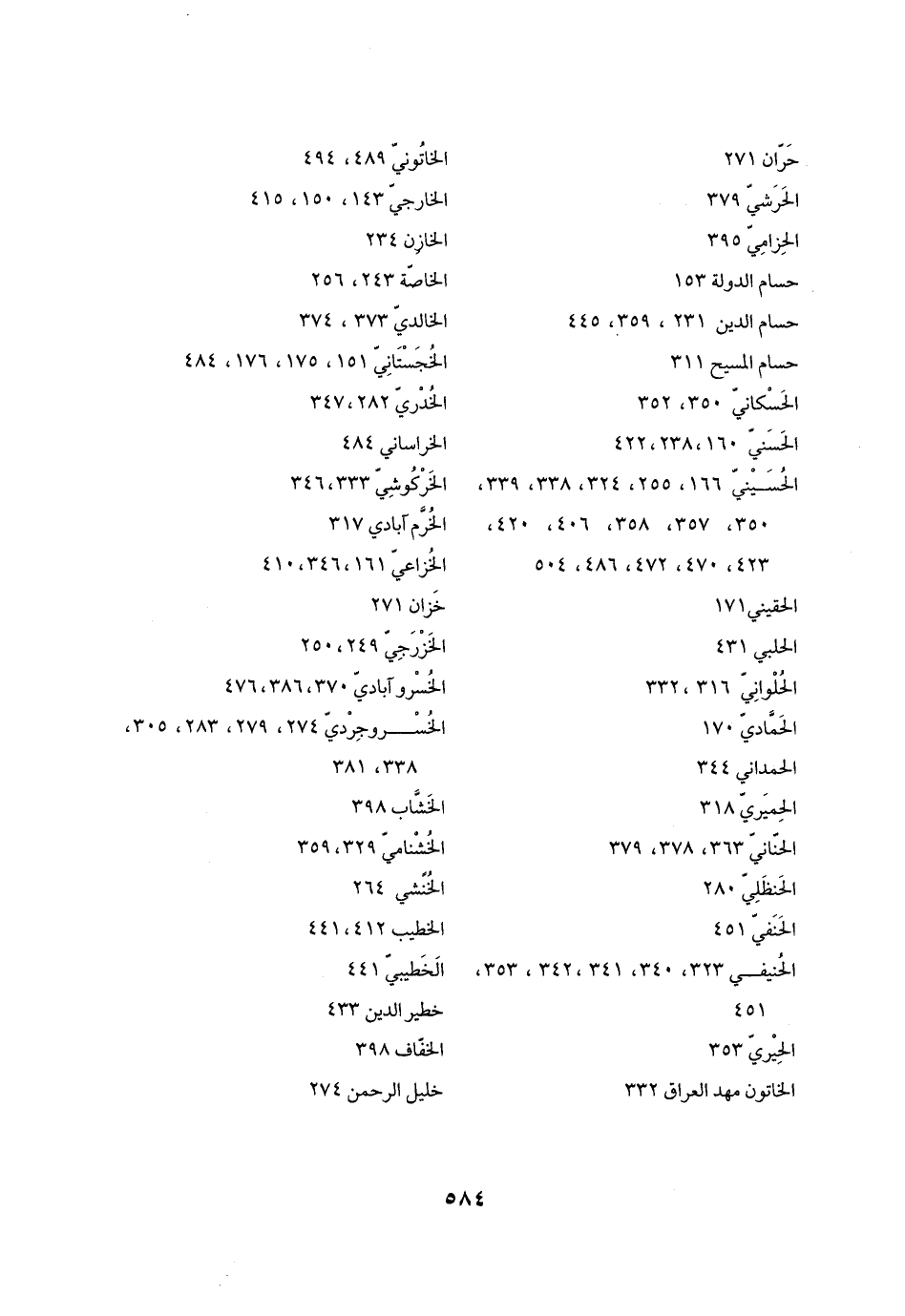 الحسينيّ 166، 255، 324، 338، 339، 350، 357، 358، 406، 420، 423، 470، 472، 486، 504