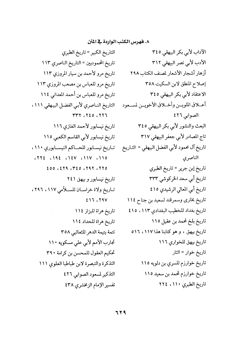 8. فهرس الكتب الواردة في المتن