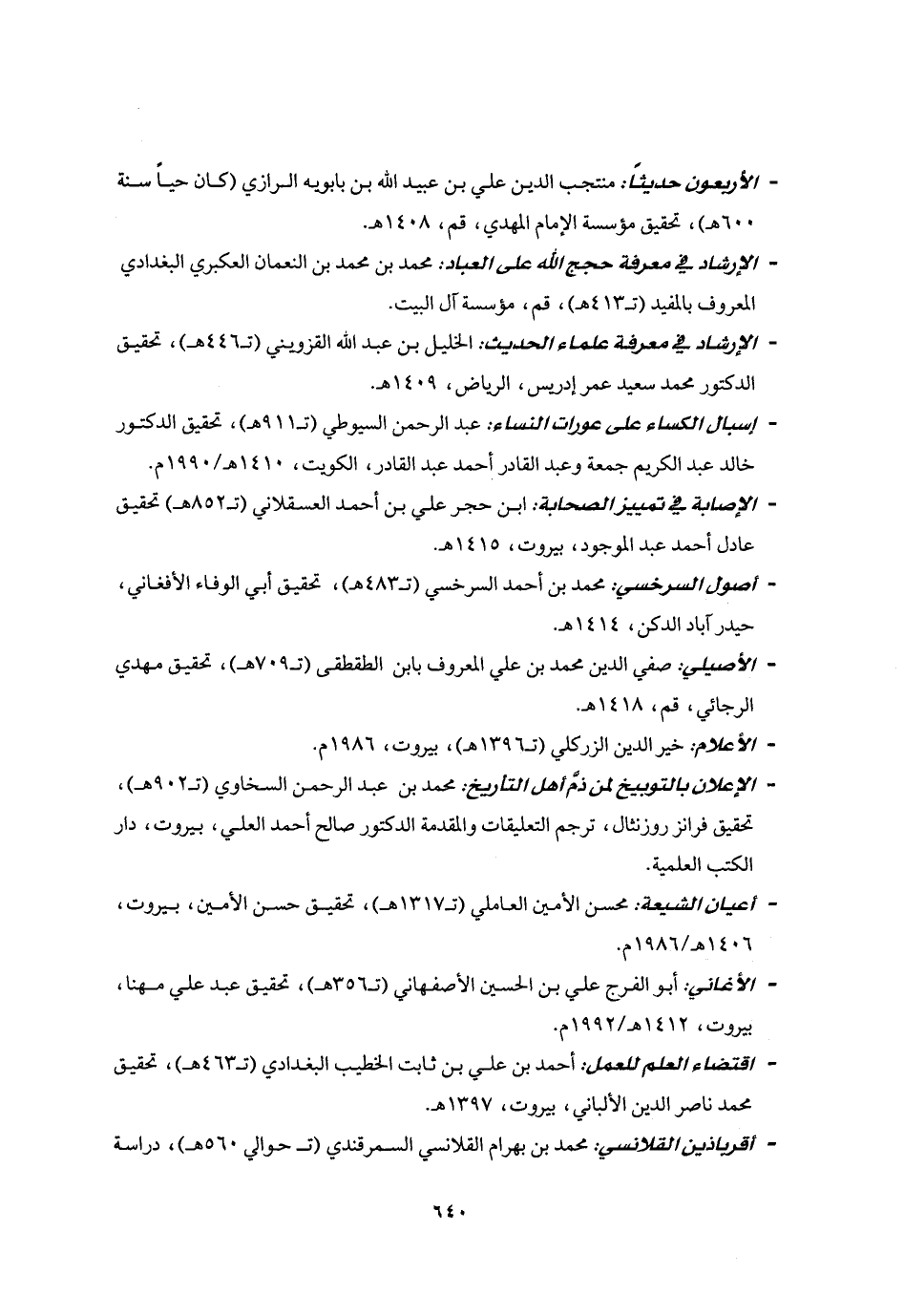 - الإرشاد في معرفة علماء الحديث: الخليل بن عبد الله القزويني (ت 446 هـ) ، تحقيق الدكتور محمد سعيد عمر إدريس، الرياض، 1409 هـ.