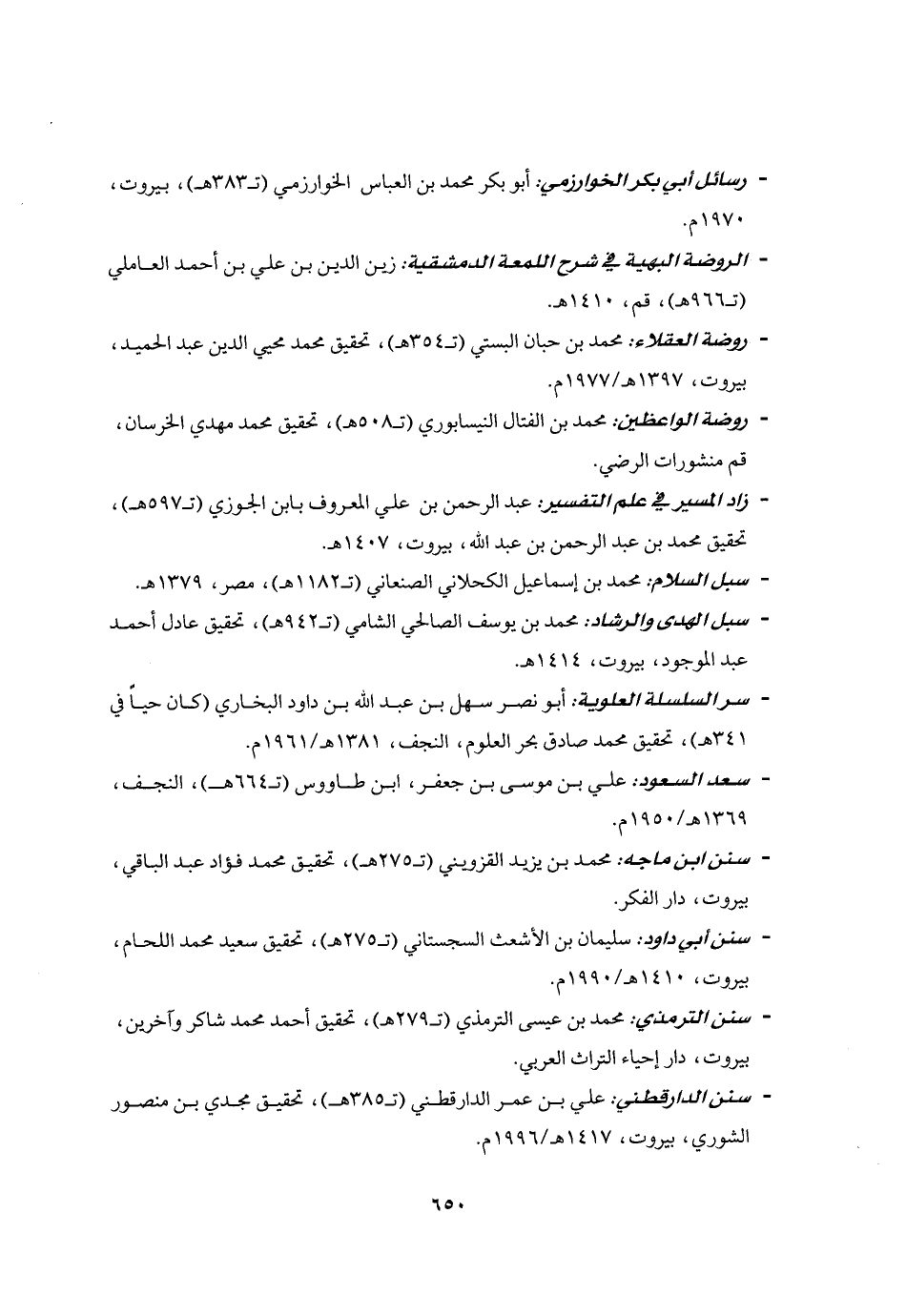 - سعد السعود: علي بن موسى بن جعفر، ابن طاووس (ت 664 هـ) ، النجف، 1369 هـ/ 1950 م.