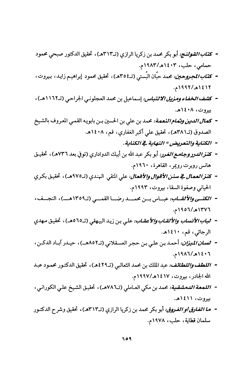- ما الفارق أو الفروق: أبو بكر محمد بن زكريا الرازي (ت 313 هـ) ، تحقيق وشرح الدكتور سلمان قطاية، حلب، 1978 م.