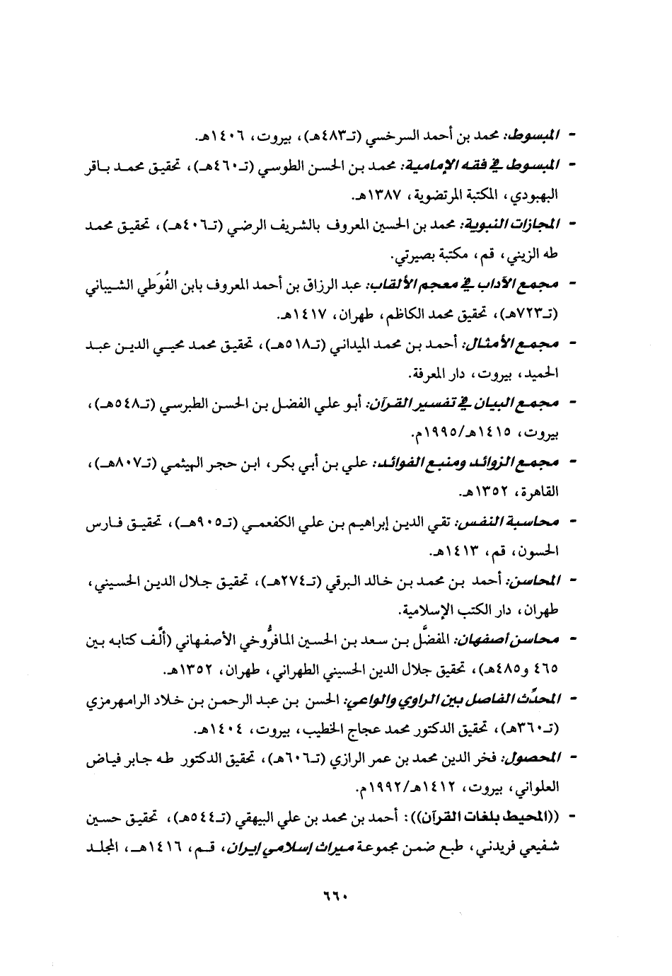 - مجمع البيان في تفسير القرآن: أبو علي الفضل بن الحسن الطبرسي (ت 548 هـ) ، بيروت، 1415 هـ/ 1995 م.