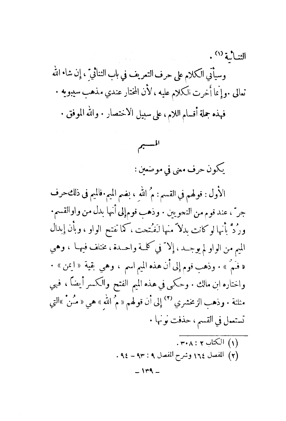 وسيأتي الكلام على حرف التعريف في باب الثنائي، إن شاء الله تعالى. وإنما أخرت الكلام عليه، لأن المختار عندي مذهب سيبويه.