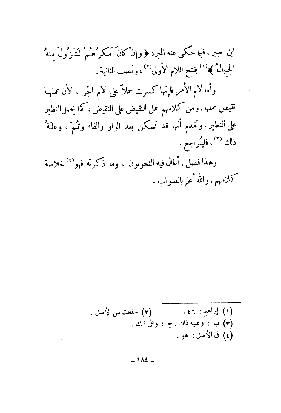 ابن جبير، فيما حكى عنه المبرد " وإن كان مكرهم لتزول منه الجبال " بفتح اللام الأولى، ونصب الثانية.