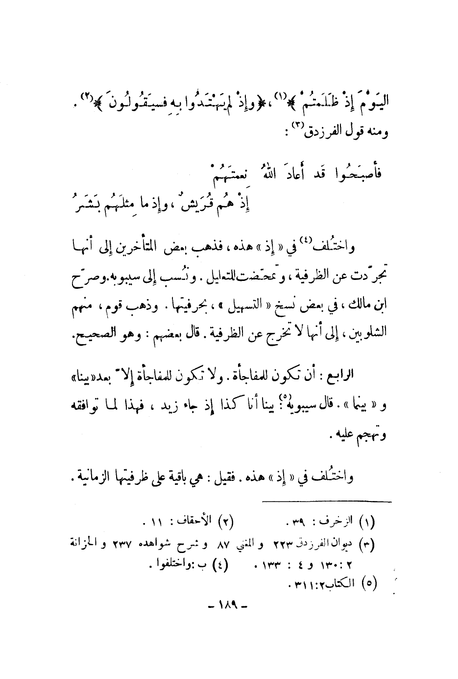 اليوم إذ ظلمتم "، " وإذ لم يهتدوا به فسيقولون ". ومنه قول الفرزدق: