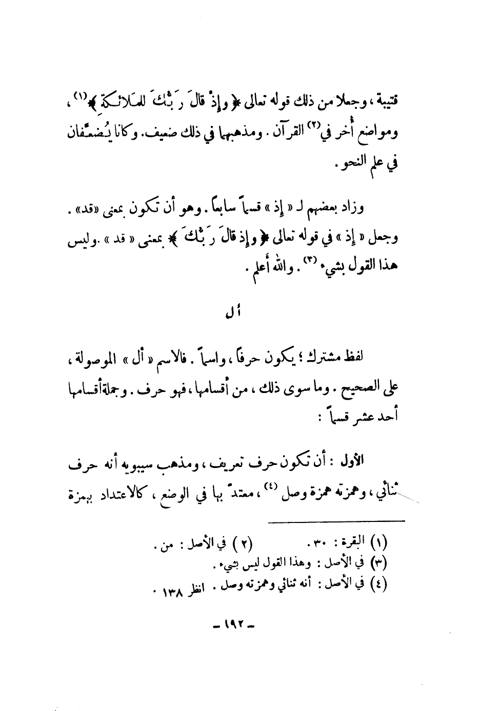 لفظ مشترك؛ يكون حرفاُ، واسماً. فالاسم أل الموصولة، على الصحيح. وما سوى ذلك، من أقفسامها، فهو حرف. وجملة أقسامها أحد عشر قسماً: الأول: أن تكون حرف تعريف، ومذهب سيبويه أنه حرف ثنائي، وهمزته همزة وصل، معتد بها في الوضع، كالاعتداد ببمزة
