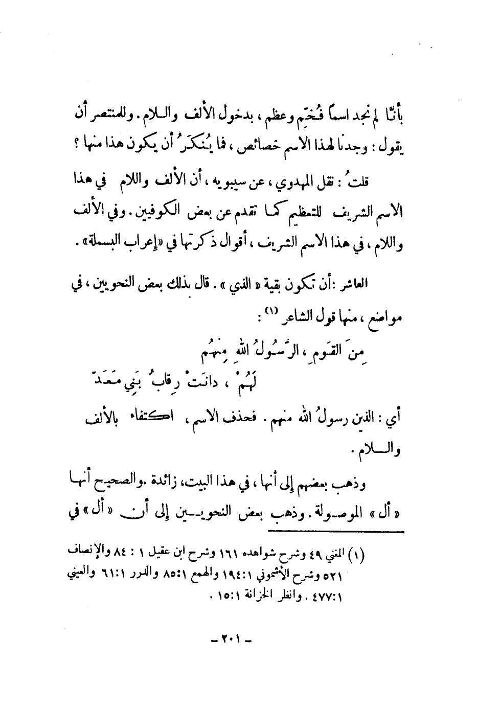 وذهب بعضهم إلى أنها، في هذا البيت، زائدة. والصحيح أنها أل الموصولة. وذهب بعض النحويين إلى أن أل في