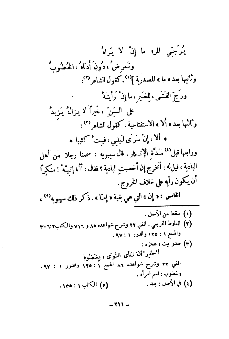 وثالثها بعد ألا الاستفتاحية، كقول الشاعر: ألا إن سرى ليلي، فبت كئيبا ورابعها قبل مدة الإنكار. قال سيبويه: سمعنا رجلا من أهل البادية، قيل له: أتخرج إن أخصبت البادية؟ فقال: أأنا إنيه! منكراً أن يكون رأيه على خلاف الخروج.