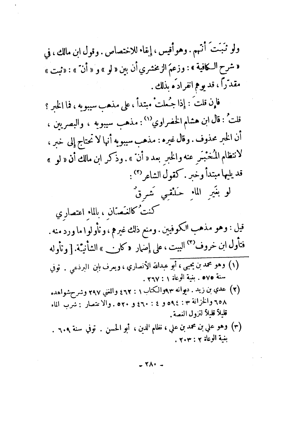 قيل: وهو مذهب الكوفيين. ومنع ذلك غيرهم، وتأولوا ما ورد منه. فتأول ابن خروف البيت، على إضمار كان الشأنية وتأوله