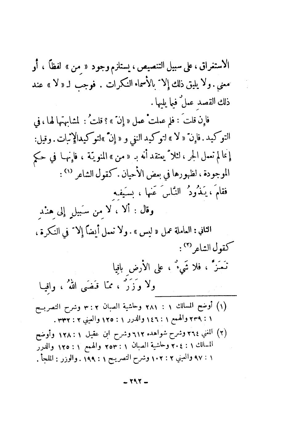 الاستغراق، على سبيل التنصيص، يستلزم وجود من لفظاً، أو معنى. ولا يليق ذلك إلا بالأسماء النكرات. فوجب ل لا عند ذلك القصد عمل فيما يليها.
