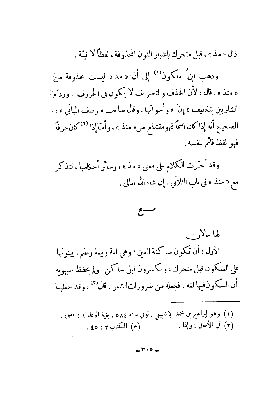 وقد أخرت الكلام على معنى مذ، وسائر أحكامها، لتذكر مع منذ في باب الثلاثي. إن شاء الله تعالى.