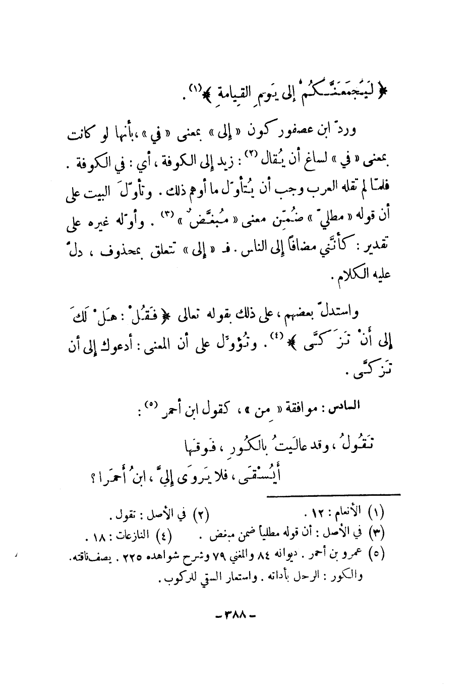 ورد ابن عصفور كون إلى بمعنى في، بأنها لو كانت بمعنى في لساغ أن يقال: زيد إلى الكوفة، أي: في الكوفة. فلما لم تقله العرب وجب أن يتأول ما أوهم ذلك. وتأول البيت على أن قوله مطلي ضمن معنى مبغض. وأوله غيره على تقدير: كأنني مضافاً إلى الناس. فإلى تتعلق بمحذوف، دل عليه الكلام.