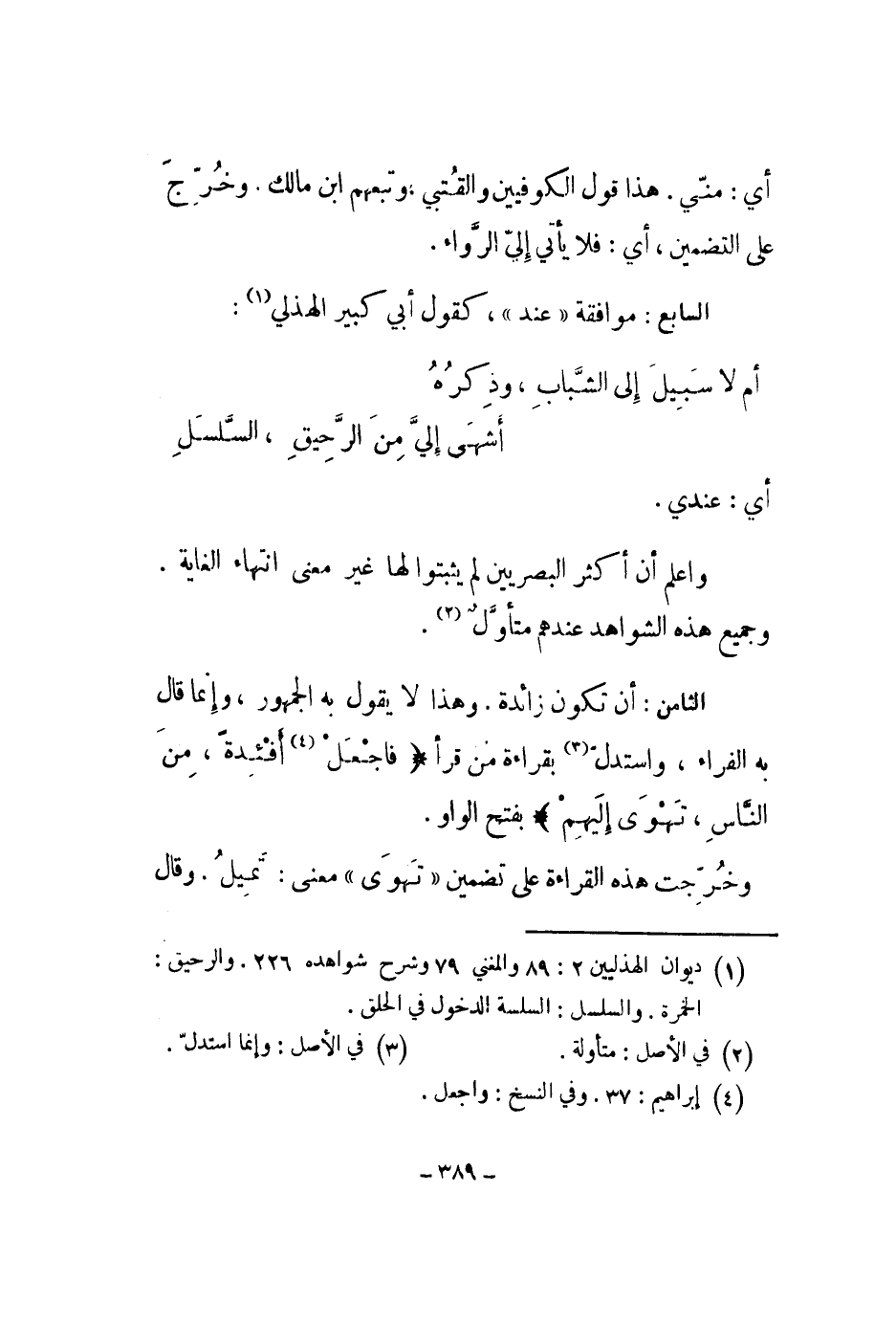 واعلم أن أكثر البصريين لم يثبتوا لها غير معنى انتهاء الغاية. وجميع هذه الشواهد عندهم متأول.