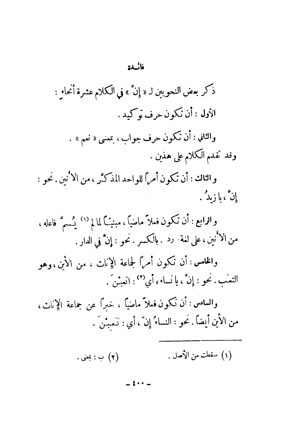 ذكر بعض النحويين لإن في الكلام عشرة أنحاء: الأول: أن تكون حرف توكيد.