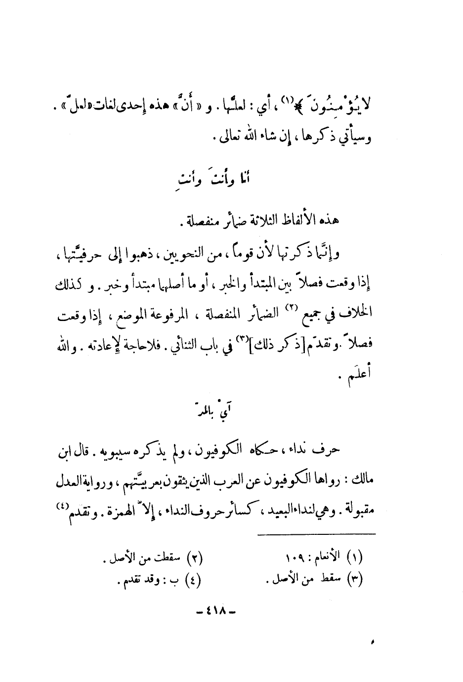 وإنما ذكرتها لأن قوماً، من النحويين، ذهبوا إلى حرفيتها، إذا وقعت فصلاً بين المبتدأ والخبر، أو ما أصلهما مبتدأ وخبر. وكذلك الخلاف في جميع الضمائر المنفصلة، المرفوعة الموضع، إذا وقعت فصلاً وتقدم ذكر ذلك في باب الثنائي. فلا حاجة لإعادته. والله أعلم.