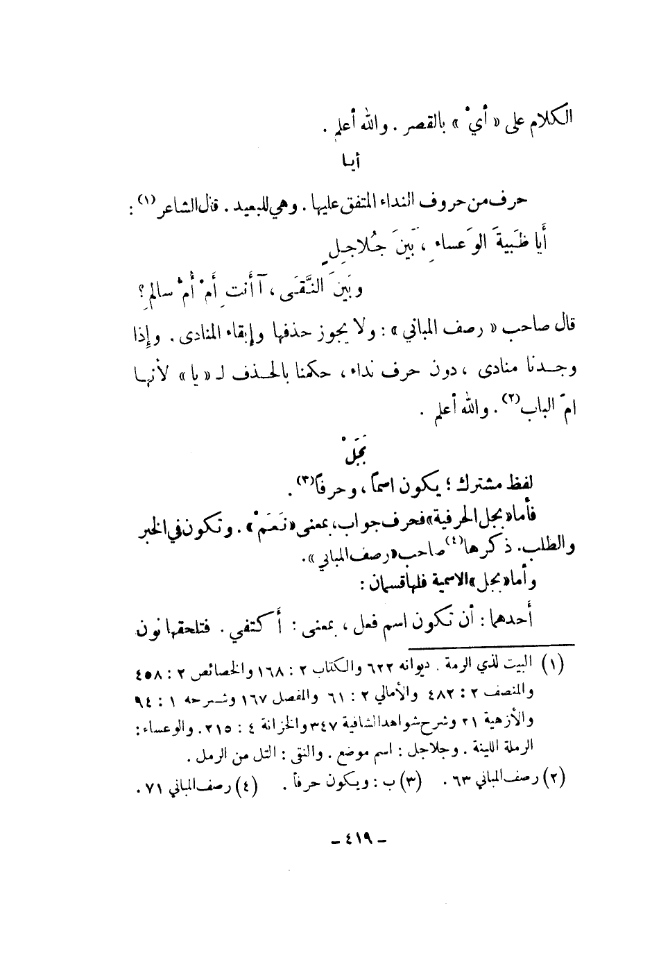 حرف من حروف النداء المتفق عليها. وهي للبعيد. قال الشاعر: