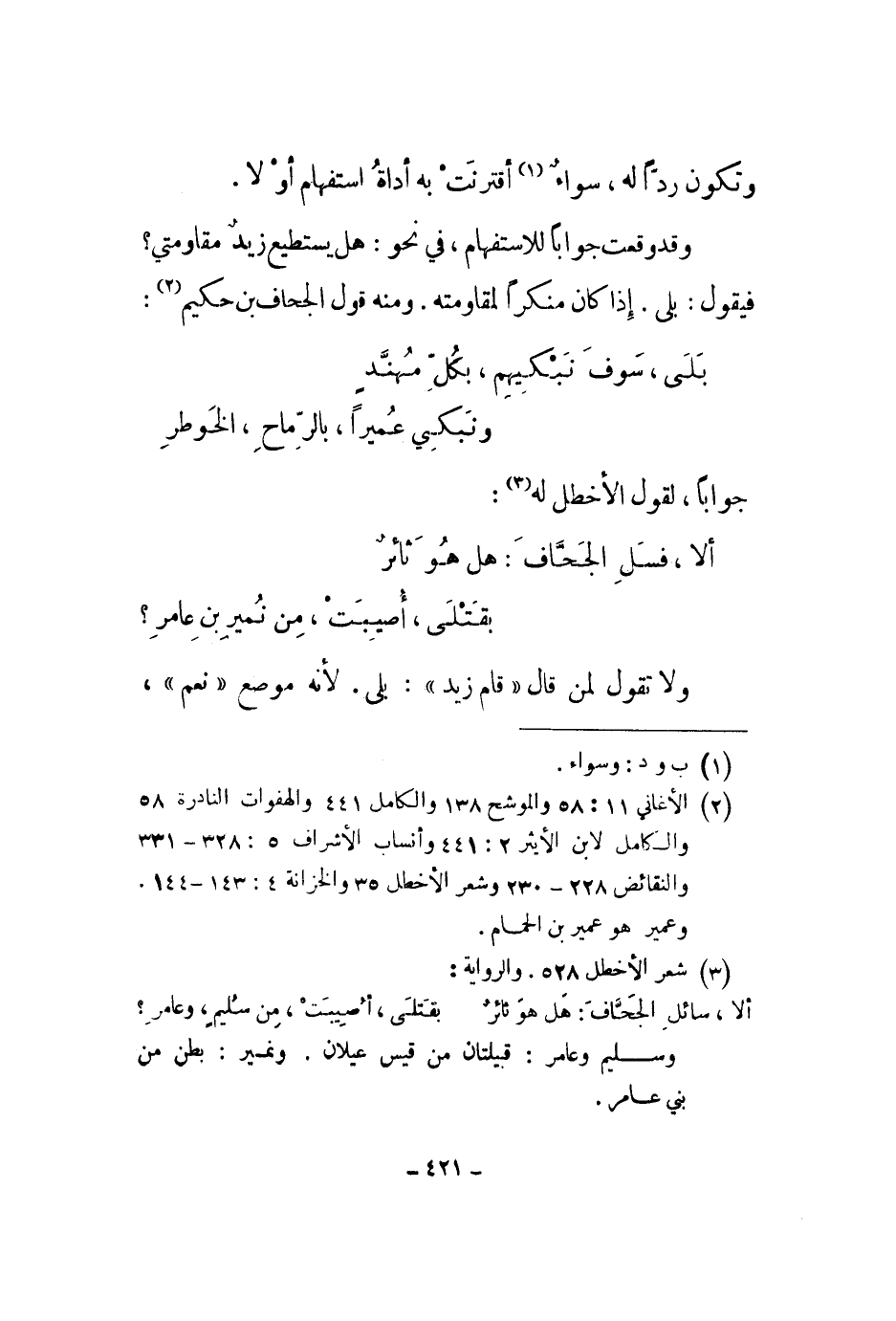 جواباً، لقول الأخطل له:
